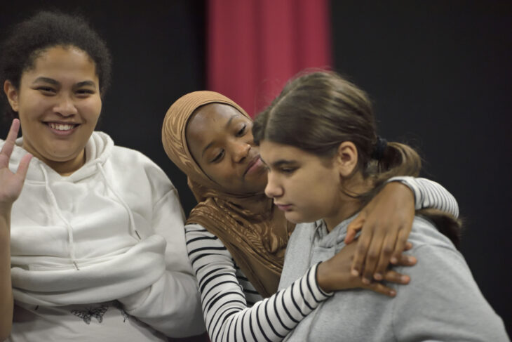 Dans le cadre de la phase pilote du projet « Libre de danser », deux cours de danse hebdomadaires sont dispensés aux élèves de deux classes intégrées au cycle des Voirets dans la commune de Plan-les-Ouates. Âgé·e·s de 12 à 15 ans, ces adolescent·e·s en situation de déficience intellectuelle et/ou de troubles du spectre de l’autisme apprennent à s’exprimer par le corps et à appréhender leurs émotions sous la guidance de Lucy Nightingale, enseignante au Conservatoire populaire spécialisée dans l’accompagnement de publics à besoins spécifiques. Elles/ils sont également encadré·e·s par des thérapeutes et enseignant·e·s de la Fondation Ensemble qui œuvre en faveur des personnes en situation de handicap.